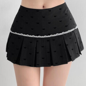 The Sweetheart ballet core pleated skirt, features a delightful combination of lace patchwork and a plush bow. Its low-waisted design and unique skort silhouette make it a must-have for any wardrobe. Made from 75% polyester, 19% cotton, and 5% spandex, this skirt is both comfortable and stylish. Available in shades of grey and black, and in sizes XS, S, M, and L, it is a versatile piece that will elevate any outfit.